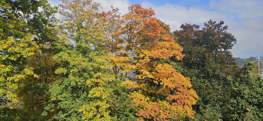 Blätter wirbeln, tanzen leis’ im Wind, fallen sanft, als wär’s ein Abschiedslied.